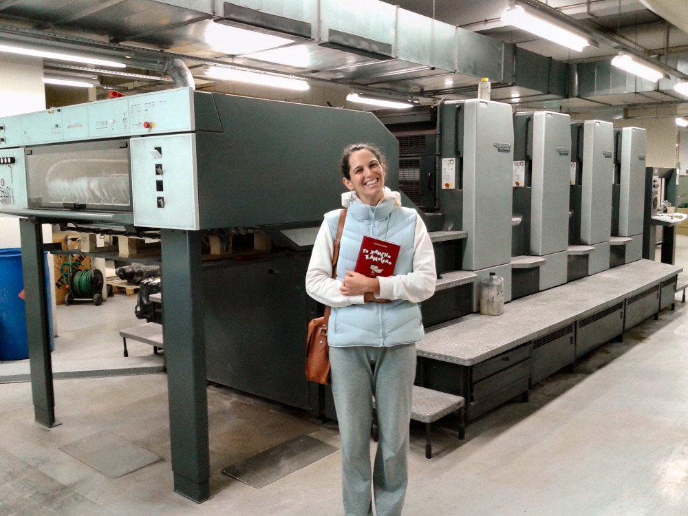 Electra in front of the actual machine that printed our book. I could kiss that metal! Published December 12, 2014 at 1000 × 750 in Hold the Press: Runaway Smile is out! ← Previous Next → Share this: CounterSocialShare on Tumblr Print (Opens in new window) Print Like Loading...