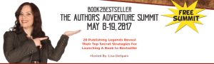 Lisa sent this note and schedule, below, to those of us who subscribe to her newsletter and who signed up to be notified of this coming week’s events in the The Author’s Adventure Summit 2017 (which runs May 8 – 19, 2017).