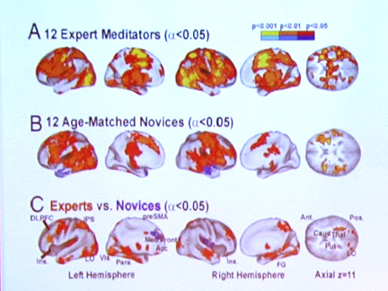 2. Insight or Vipassana (Vipashana) meditators’ brains have been studied most. Here are some pictures to show how much that type of meditation changes the brains of Insight meditators: